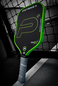 Potenza P+ PowerSpin Carbon COREx3 Professional Paddle (Standard Shape and handle 5.5”) Unleash elite performance with the Potenza P+ PowerSpin Carbon COREx3, a professional-grade pickleball paddle engineered for power, precision, and spin mastery. Designed for competitive players, this standard-shaped paddle delivers the perfect balance of control, maneuverability, and explosive shot-making, giving you an edge in every rally. Key Features: • COREx3 Multi-Layer Core Technology – A cutting-edge three-layer core system optimizes power transfer and touch, delivering consistent responsiveness for both aggressive and finesse play. • T700 Raw “PowerSpin” Carbon Fiber Face – Constructed with premium T700 carbon fiber, the textured surface enhances spin generation, durability, and precision, allowing for devastating topspin and deceptive slices. • Standard Shape & Optimized Sweet Spot – A balanced design provides a wider sweet spot, maximizing control and stability for precise shot placement. • Pro-Tuned Weight & Balance – Optimized for power players, the paddle’s carefully calibrated weight distribution enhances stability, control, and effortless power. • ComfortMax Grip – A high-performance, moisture-wicking grip ensures superior handling, reducing fatigue during intense matches. Whether you’re dictating play from the baseline or dominating at the net, the Potenza P+ PowerSpin Carbon COREx3 is built for those who demand the ultimate in performance, spin, and control. Elevate your game—Power. Spin. Control. Potenza. Potenza Pickleball – Engineered for Champions. Color: Neon GREEN POTENZA 100% RAW T700 CARBON FIBER Surface Advanced Polypropylene COREx3 Technology for professional players. (6) cubic mm core density. Expertly designed handle grip to reduce vibration & slippage 100% Designed in the USA COREx3 Thickness: 16 mm (0.63 in) Height: 16.5 in Width: 7.5 in Grip Length: 5.5 in (Standard Handle) Grip Circumference: 4.25 in Weight: Midweight (7.7 - 7.8 oz) 30-day returns all year round USAPA Approved