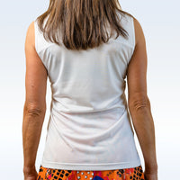 A wardrobe staple, our Classic White is a smart color choice of which coordinates with any number of our prints. Our sleeveless quarter-zip tops are the perfect essential for keeping cool, on or off the courts.