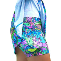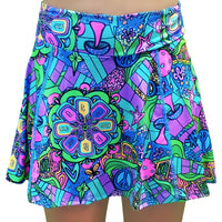There’s only one word to describe our all time favorite print and the game of pickleball…that’s “groovy!” With icons from the 60’s and 70’s along with pickleballs, paddles, courts and game lingo, the psychedelic colors will definitely take you back down memory lane! FEATURES ● Figure flattering A-line style, with classy flare, hip to hem ● Modest skirt length & short inseam, both increasing with size ● Comfortable, no roll, wide waistband ● Custom milled, lightweight 4-way stretch fabric ● Attached compression shorts ● Ball pocket & deep pocket on each side of shorts ● Tug free, no slip grip tape at leg openings ● Flat seam construction for no fuss wear SIZING NOTE: Skorts get longer as you increase in size. Each size up we increase the length by an inch.