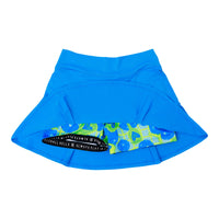 Bright electric blue skirt, combined with our Net worth print attached compression shorts. Our Net worth print has pickleballs and paddles bouncing atop a net design background in a bright, neon color palette of blues, greens and yellow. It’s a worthy combo! FEATURES Figure flattering style, with two sassy pleats in front & back Modest skirt length & short inseam, both increasing with size Comfortable, no roll, wide waistband Custom milled, lightweight 4-way stretch fabric Attached compression shorts Ball pocket & deep pocket on each side of shorts Tug free, no slip grip tape at leg openings Flat seam construction for no fuss wear