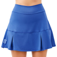 Bright gecko green skirt, combined with our double bounce print, attached compression shorts. FEATURES Figure flattering style, with two sassy pleats in front & back Modest skirt length & short inseam, both increasing with size Comfortable, no roll, wide waistband Custom milled, lightweight 4-way stretch fabric Attached compression shorts Ball pocket & deep pocket on each side of shorts Tug free, no slip grip tape at leg openings Flat seam construction for no fuss wear
