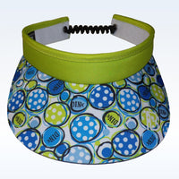 Our Dink 1 print is featured on the hard bill, both top and underside of Visor. With shades of blues and lime green, it’s a great way to stay cool during those sunny days on and off the courts. FEATURES Elastic coil binding Stay put adjustable all size fit Moisture wicking headband Cool & comfortable Lightweight, quick dry materials Hard bill