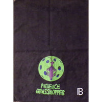 Highly absorbent 100% polyester fabric, is quick drying Heavy duty grommet and carbineer Large size 17 X 23 Has Patience Grasshopper, and Grasshopper imprinted on front