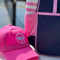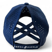 Elevate your pickleball game with our stylish, lightweight cap designed specifically for women. Available in four vibrant colors, this cap features an embroidered pickleball motif on the front, showcasing your love for the game. Crafted from a breathable performance fabric, it keeps you cool and comfortable on and off the court. The back of the cap features a perforated fabric for added ventilation, and an adorable criss-cross detail not only adds a touch of flair but also accommodates your ponytail. An adjustable velcro closure ensures a perfect fit for everyone. Whether you're on the court or on the go, this cap is a must-have accessory for the pickleball enthusiast!
