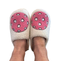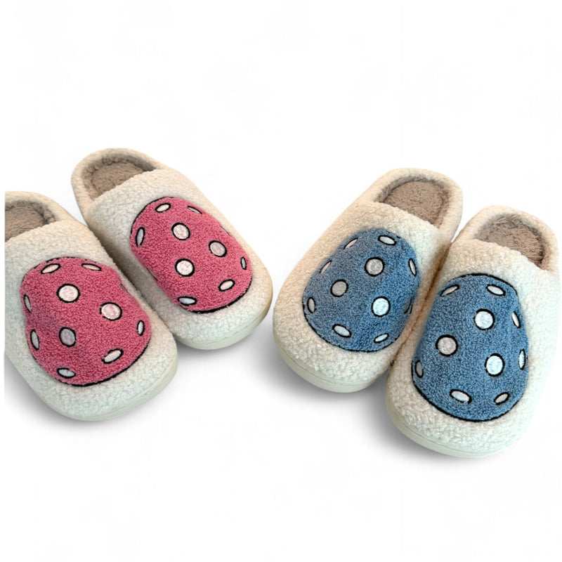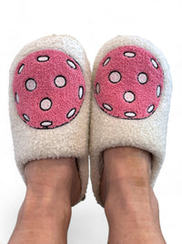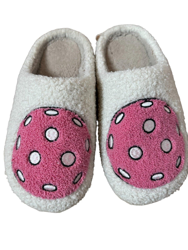 Stand out with style! These slippers feature an adorable pickleball design on the top, and are ultra comfortable - what could be better? They also coordinate with our pickleball pjs!