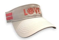 Our Runway Athletics custom visors are made with the finest white cotton canvas, with accent stripes on sides and a velcro strap for easy fastening. Super comfortable and designed with a slightly higher profile to protect the hairline from sun exposure.