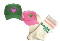 Pickleballer Vibes Gift Pairing Celebrate your pickleball passion with our perfectly matched gift set. Whether you choose the vibrant Pickleballer Trucker Hat in pink or green, it pairs effortlessly with our stylish Pickleball Vibes socks. What's Included: Pickleballer Trucker Hat: Available in pink or green, featuring a breathable mesh back and adjustable snap closure. Pickleball Vibes Socks: Complementary design that adds a touch of flair to any outfit. This thoughtful gift arrives bagged and ready to go, making it a perfect choice for any pickleball enthusiast. A winning combination that's sure to impress! ($68 Retail Value)