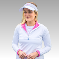 You asked, we designed! The Playly Visor is the perfect evolution of our fan-favorite Hi Hat, crafted to keep you cool and comfortable on and off the pickleball court. Made from 100% polyester, this visor is breathable, lightweight, and durable. With a 3D sonic weld brand icon and an adjustable Velcro backstrap, it offers a secure, customizable fit. Crafted with natural UV-protective fabrics, it ensures protection from the sun while keeping you comfortable. This visor also includes a cotton sweatband featuring moisture-wicking technology, helping you stay dry throughout your game. Available in three colorways—White with Pink, Light Blue with White and Black with Geode—this visor is a perfect blend of performance and style. • One size fits most • Hand wash; air dryCOMPLETE YOUR LOOKOnce you’ve picked your visor, shop the full collection to find coordinating pieces.