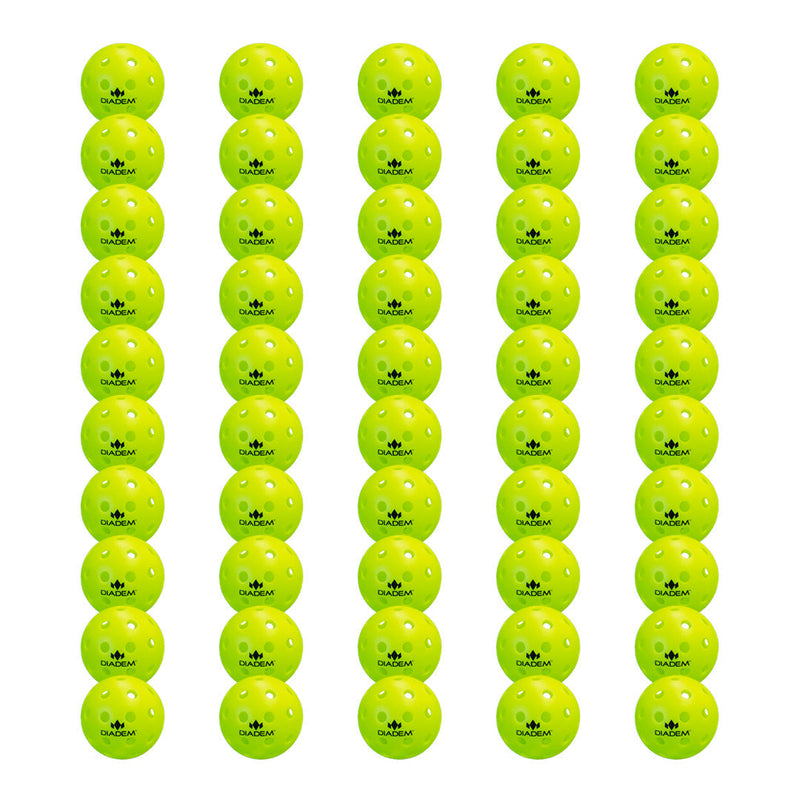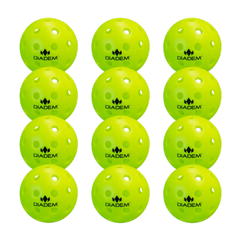 Our outdoor Premier 40 pickleballs offer a true bounce and long lasting durability. Made with high quality PET plastic, these balls are ideal for training. They will last up to 3 times longer than other competitor balls with our proprietary formula and laser melt construction. Available in sets of 3, 12 and 50. Neon Yellow for easy visibility. Non USAP approved training ball.