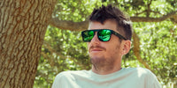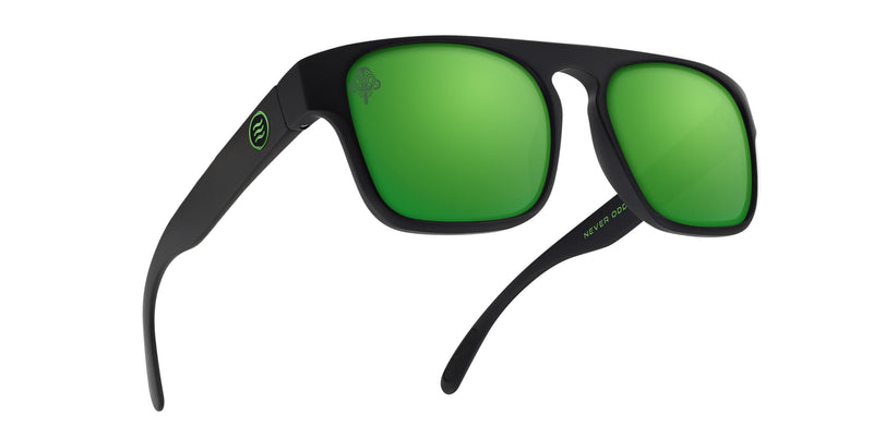 The Primatology polarized rectangular shades are as bold as it gets. These polarized sunglasses, co-created with Dirt Monkey, pair a matte black frame with striking green mirrored lenses for a look that’s sharp but not overdone. The green Neven tilde logos on the temples give them a fresh twist, and non-slip inserts in the temple tips make sure they’re as functional as they are stylish. Finished with Dirt Monkey’s signature logo, Primatology keeps your vibe untamed but perfectly in control. FEATURES INCLUDE Frame size: Large Finish: Matte Custom etched Dirt Monkey lens logo Frame color: Black Lens color: Green Interior lens tint: Purple/Gray Light Transmission: 14.01% Non-slip ear grips Stainless steel flexible hinges Upgraded TR90 frames Polarized UV400 protection Premium oleophobic coating Anti-saltwater FDA approved, impact-resistant lens Protective pouch included