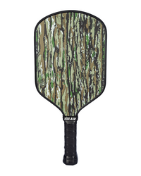 These RealTree x Volair custom pickleball paddles are in our hybrid shape with an elongated handle. USAP-approved with fiberglass face. 16mm Paddle Specs: Average Weight: 8.1 oz Paddle Length: 16.35 in Paddle Width: 7.5 in Thickness: 16 mm Handle Length: 5.5 in Grip Circumference: 4.3 in Swing Weight: 120 Twist Weight: 6.09 Core Material: Polypropylene Honeycomb Paddle Face Material: Fiberglass *Realtree x Volair paddles are currently excluded from all discounts