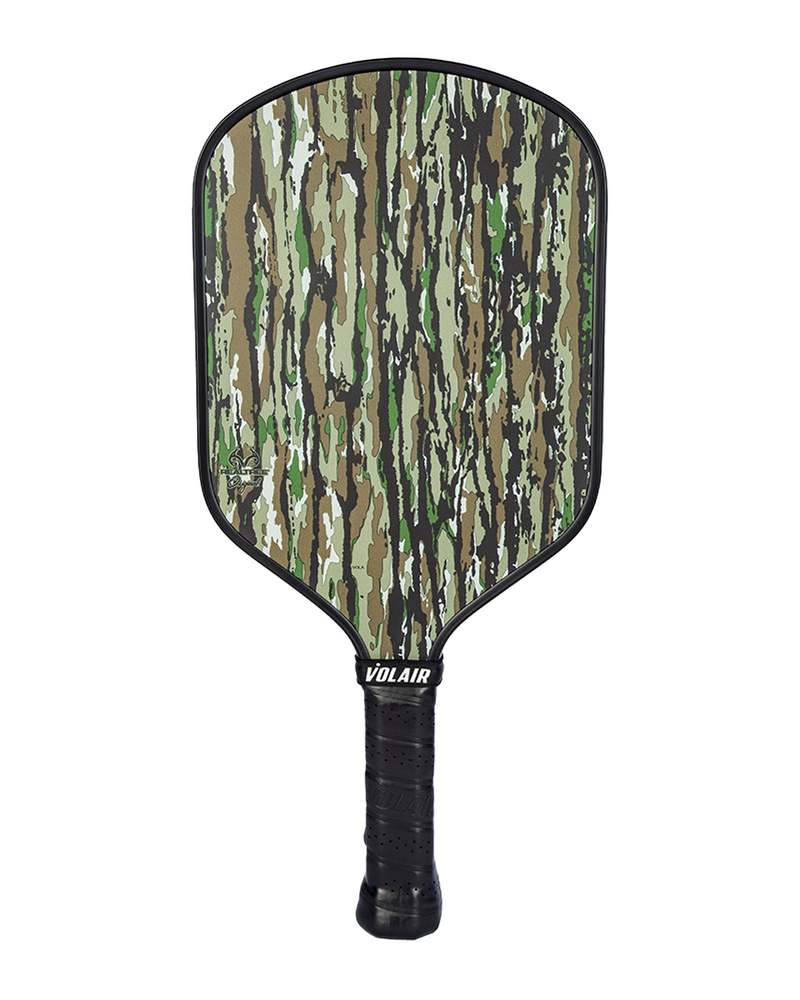 These RealTree x Volair custom pickleball paddles are in our hybrid shape with an elongated handle. USAP-approved with fiberglass face.