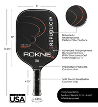 A true American classic, the ROKNE Republic 2.16 unidirectional carbon fiber pickleball paddle captures the essence of domestic craftmanship with a unique blend of premium materials and proprietary engineering to create unprecedented precision, control and consistency.