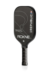 A true American classic, the ROKNE Republic 3.16 raw carbon fiber pickleball paddle captures the essence of domestic craftmanship with a unique blend of premium materials and proprietary engineering to generate the ultimate combination of power, control and spin.