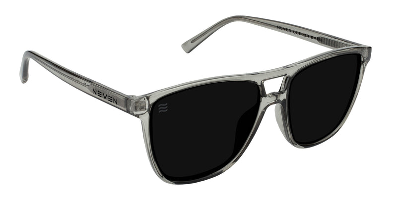 The cool gray frame of the Rip Tide sunnies brings coastal charm to any look, whether you're hitting the beach or exploring the city. With excellent eye protection, you can soak up the sun in style. Embrace the carefree spirit of Indian Harbor Beach and rock the coastal vibes with these shades. Introducing the IHB collection: sunglasses inspired by the stunning Indian Harbor Beach. With a blend of classic rectangle frames and a modern double bridge, they give you a unique and timeless look that stands out in the crowd. FEATURES INCLUDE Frame size: Medium Finish: Gloss Frame color: Transparent Gray Lens color: Black Interior lens tint: Black Light Transmission: 5.42% Stainless steel 5-barrel hinges Upgraded TR90 frames Polarized UV400 protection Premium oleophobic coating Anti-saltwater FDA approved, impact-resistant lens Protective pouch included