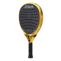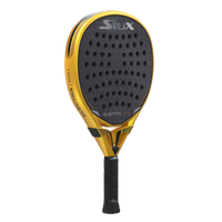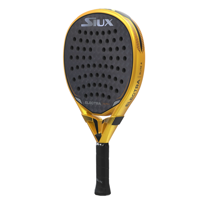 Siux Electra ELITE 4 2025 – Precision, Power, and Comfort Description:The Siux Electra ELITE 4 2025 is designed for advanced and expert players seeking maximum control and power. Its round shape ensures optimal control, while the balanced weight towards the handle offers superior maneuverability for quick reactions. Built with a 15K carbon face, it combines hardness and durability for powerful, controlled shots. The dense EVA Hard core delivers impressive power for smashes and excellent trajectory control, making it ideal for players who prefer a rigid feel. Equipped with ShockOut anti-vibrators in the frame and an anti-vibration overgrip, it reduces vibrations to protect joints and enhance comfort. The textured varnish finish and glossy design improve ball grip and spin while adding a sleek, premium look. Key Features: Shape: Round for maximum control Face: 15K Carbon for power and durability Core: EVA Hard for strong, controlled shots Balance: Handle-weighted for agility ShockOut technology: Reduces vibrations for joint protection Finish: Textured varnish for enhanced spin Ideal for: Advanced to expert players who demand precision, power, and comfort in every shot.