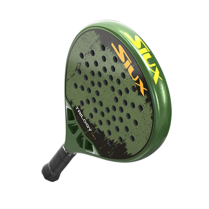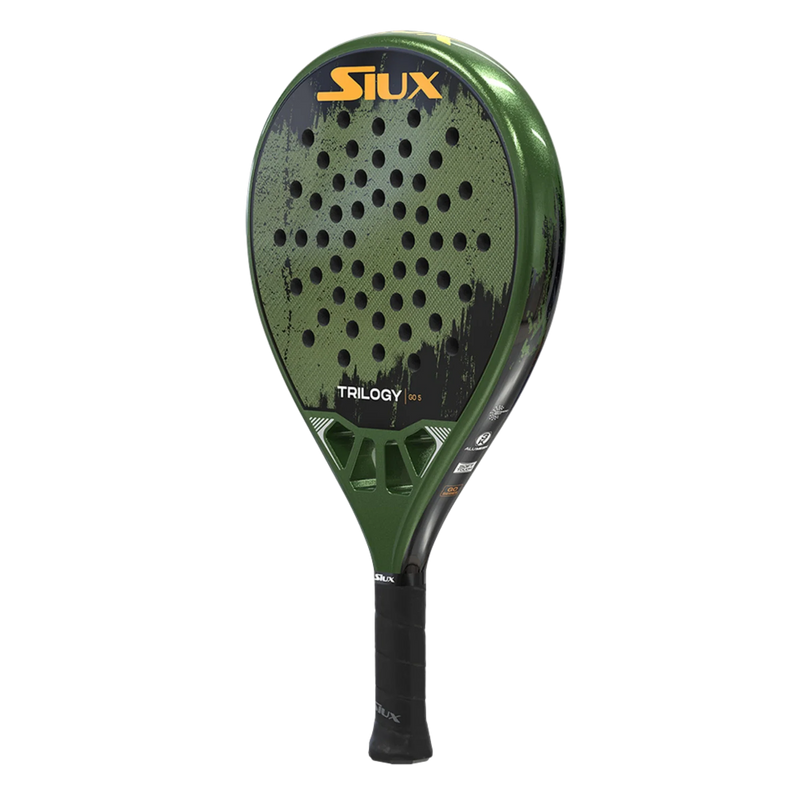 Siux Trilogy Go 5 – Control, Comfort, and Precision Description:The Siux Trilogy Go 5 is crafted for players who prioritize precision, comfort, and effortless handling. Its round shape and low balance enhance maneuverability and control, making it ideal for consistent baseline play and finesse at the net. Featuring a soft EVA core, it absorbs impact for a plush, comfortable feel, while the fiberglass face and frame add flexibility and forgiveness—perfect for intermediate players or those seeking an arm-friendly racket for longer sessions. Key Features: Shape: Round for maximum control and large sweet spot Balance: Low for quick reactions and reduced arm strain Weight: 355–375 g for easy handling with stability Core: Soft EVA for comfort and precise touch Face & Frame: Fiberglass for flexibility, forgiveness, and durability Finish: Smooth surface for clean ball release Technologies: ShockOut Anti-Vibration System: Reduces vibrations to prevent injuries and enhance comfort Comfort Grip Technology: Ergonomic grip for a secure and comfortable hold Ideal For:Intermediate players, or advanced players seeking a comfortable, control-oriented racket. Perfect for tactical players who value consistency, placement, and smart shot selection.