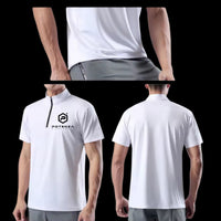POTENZA Sports Athletic Performance Polo (Unisex) Spandex / Polyester Quarter Zip Collar Regular Fit Color: White Quick-Dry fabric for Tournament Play