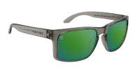 The Stormy sunglasses from the Mattex XL collection feature a glossy clear gray frame and green mirrored polarized lenses in a classic rectangular shape. With an oversized fit built for coverage and clarity, they handle bright days with ease while keeping things cool and understated. Also available in prescription, because sharp vision should never be weather-dependent. FEATURES INCLUDE Frame size: X-Large Finish: Gloss Frame color: Transparent Gray Lens color: Green Interior lens tint: Purple/Gray Light Transmission: 14.01% Quick Close hinges Upgraded TR90 frames Polarized UV400 protection Premium oleophobic coating Anti-saltwater FDA approved, impact-resistant lens Protective pouch included