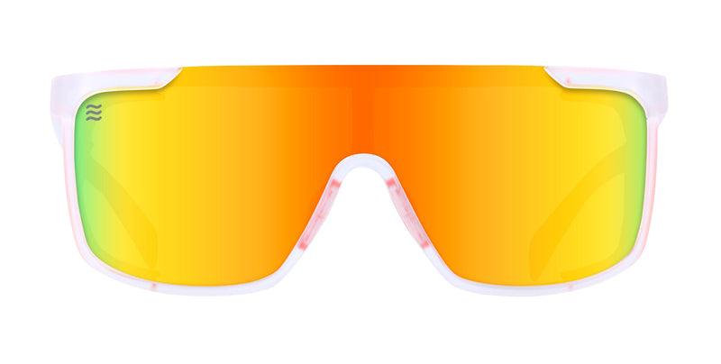 Because why just block the sun when you can dazzle it into submission? These shades are so polarized they've been mistaken for the sun's personal mood ring. Slip them on, and suddenly you're the star of your very own blockbuster, complete with removable side shields for those dramatic entrances. Worried about slippage during your spontaneous interpretative dance of the cosmos? Fear not! Sunflare comes with non-slip nose pads and ear grips, ensuring your shades stay put even during the most gravity-defying moves. With UV400 protection, these shades are your VIP pass to the hottest events on Earth, and the premium oleophobic coating keeps them as spotless as a sunbeam. Even the ocean can't resist a bit of Sun Flare thanks to the anti-saltwater feature. FDA approved and boasting impact-resistant lenses, these shades can survive more falls than a clumsy astronaut. Each pair of Sunflare sunglasses comes with a protective pouch – because even cosmic superstars need a cozy intergalactic nap! FEATURES INCLUDE Frame size: X-Large Finish: Matte Frame color: Frosted Clear/Orange Lens color: Orange/Yellow Interior lens tint: Green/Gray Light Transmission: 13.33% Removable side shields for extra sun protection Non-slip nose pads & ear grips Stainless steel 5-barrel hinges Upgraded TR90 frames Polarized UV400 protection Premium oleophobic coating Anti-saltwater FDA approved, impact-resistant lens Protective pouch included