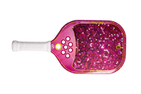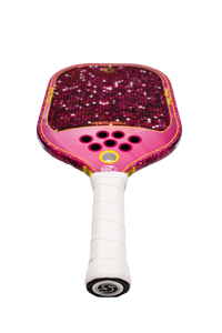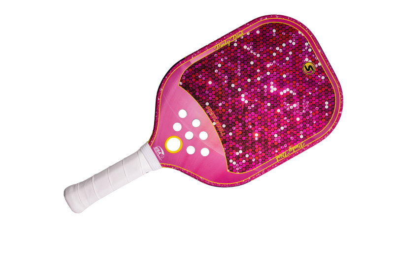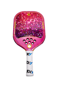 The SXY PKL Pinky Dink Pickleball Paddle boasts an expanded sweet spot, crisp powerful shots, and controlled spin, making it ideal for players who value consistency and strength. Its polypropylene honeycomb core, reinforced with foam injected edge walls, offers superior control when the game gets fast and tricky around the net. The paddle's unique combination of materials provides exceptional feedback and an extensive sweet spot, allowing players to confidently battle on the court. Our MEGAGrip carbon fiber face generates more power and spin than conventional paddles. Our exclusive PlayNeck™️ Technology, featuring a soft EVA material, sets it apart from other pickleball paddles while increasing the playing surface by up to 10% and allows the paddle to move more quickly through the air via added aerodynamic holes. Sparkle and shine on the court with SXY PKL Pinky Dink.