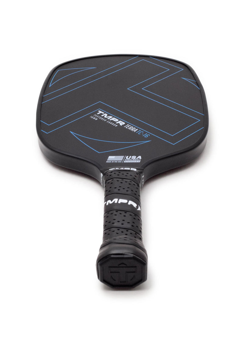 Thickness: 16 mm Length: 16.25” Width: 7.68” Handle length: 5.25“ The Terra TC-16 features the T700 textured carbon surface for maximum spin with an aerodynamic shape for faster swing speed. The 16 mm honeycomb poly core thickness gives more control for easier resets and better placement. The longer, 5.25” handle helps with two-handed backhands. Features TMPR vibration dampening technology in the handle.