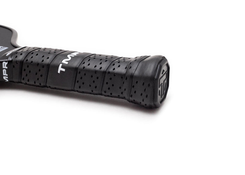 The Terra TC-16 features the T700 textured carbon surface for maximum spin with an aerodynamic shape for faster swing speed. The 16 mm honeycomb poly core thickness gives more control for easier resets and better placement. The longer, 5.25” handle helps with two-handed backhands. Features TMPR vibration dampening technology in the handle.