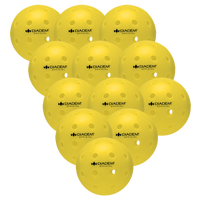 The Official Pickleball is here! This USAPA Tournament approved ball is the new standard in single mold seamless construction. Utilizing an incredibly durable plastic, the hard material and 40 equal size holes makes it ideal for outdoor play. This ball is considered a fast ball due to its hardness which places it in the upper end of the USAPA allowance. Tested in extreme conditions you can expect long lasting durability in weather as cold as 45 degrees. Consistent and reliable, bangers and dinkers alike will enjoy the ball’s ability to maintain its round shape over the life of the ball. Available in bright neon yellow and yellow for easy tracking during play. 3, 6, 12, and 50packs available. Specifications Average Weight - 0.924 oz Average Bounce - 32.66 in Average Hardness - 53.25 D Average Compression- 30.85 lbf