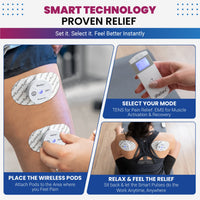 Experience effective pain relief and muscle activation with iReliev The Therapeutic Wearable System utilizes advanced TENS technology to deliver gentle impulses, blocking pain signals, promoting relaxatioion and muscle endurance (EMS Mode). Designed for convenience and comfort, our wireless muscle stimulator is the ideal solution for managing pain and enhancing muscle recovery on the go. Whether you're seeking self-care solutions or a reliable personal health care product, this wearable TENS unit is your go-to choice for a pain-free lifestyle.