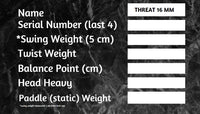 THREAT 16 Includes custom weight card, paddle cover, paddle eraser, and lead weights.