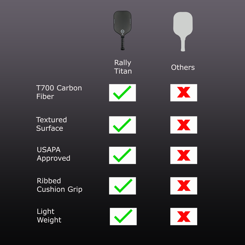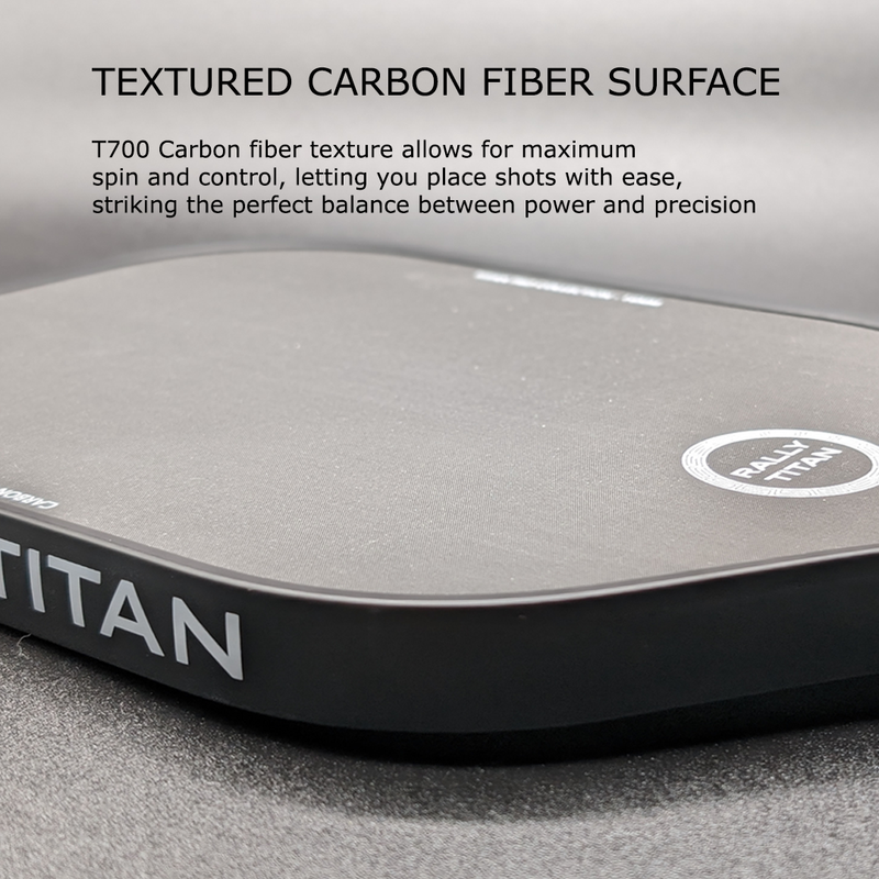 TITAN TECH LABS SPECIFICATIONS: USAPA Approved pickleball paddle 16MM CORE THICKNESS: For more control and larger sweat spot. T700 TITAN CARBON FIBER PADDLE FACE: Extra light weight paddle for better maneuverability, speed, and control TEXTURED TITAN CARBON FRICTION PADDLE SURFACE: Texture allows for maximum spin and control, This paddle lets you place shots with ease, striking the perfect balance between power and precision POLYPROPYLENE HONEYCOMB CORE: Exceptional control starts at the core with our game-changing polypropylene honeycomb core that provides enhanced sweet spot and maximum power. Our honeycombs are also small, which creates a more durable paddle and allows for better impact distribution PROTECTIVE EDGE GUARD: Reach for low shots without a worry. Our low profile durable protective edge guard protects the paddle face from damage NON-SLIP CUSHION GRIP: This uniquely padded grip allows for sweat absorption to deliver exceptional balance between comfort and control for long hours of play DURABLE FOR INDOOR OR OUTDOOR CONDITIONS