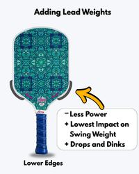 Weights For Pickleball Paddles Add these lead weights to the edge of your paddle to customize how it feels. Weights can be added anywhere along the edge to change the balance and feel of the paddle. Adding weight can change the swing weight and the size and shape of the sweet spot. For example, adding weight to the sides of the paddle can widen the sweet spot horizontally. Once you have found the perfect placement for your unique playing style, cover the weights with edge guard tape. Power Adding weight to the top of the paddle increases its swing weight, which means you need to put more effort into swinging it. This can result in hitting the ball harder. Adding weight to the handle can also increase your hand speed and balance out a heavier paddle or make a paddle feel lighter. Adding weight to the sides of the paddle can improve stability and prevent the paddle from twisting in your hand when you hit the ball. This can be especially helpful when hitting off-center shot