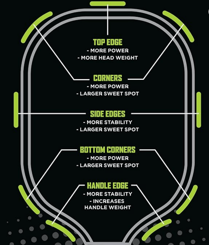 Adding weight to the sides of the paddle can improve stability and prevent the paddle from twisting in your hand when you hit the ball. This can be especially helpful when hitting off-center shot