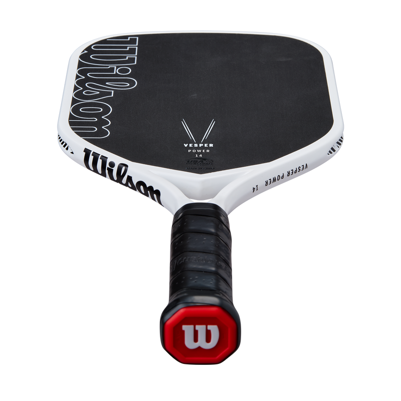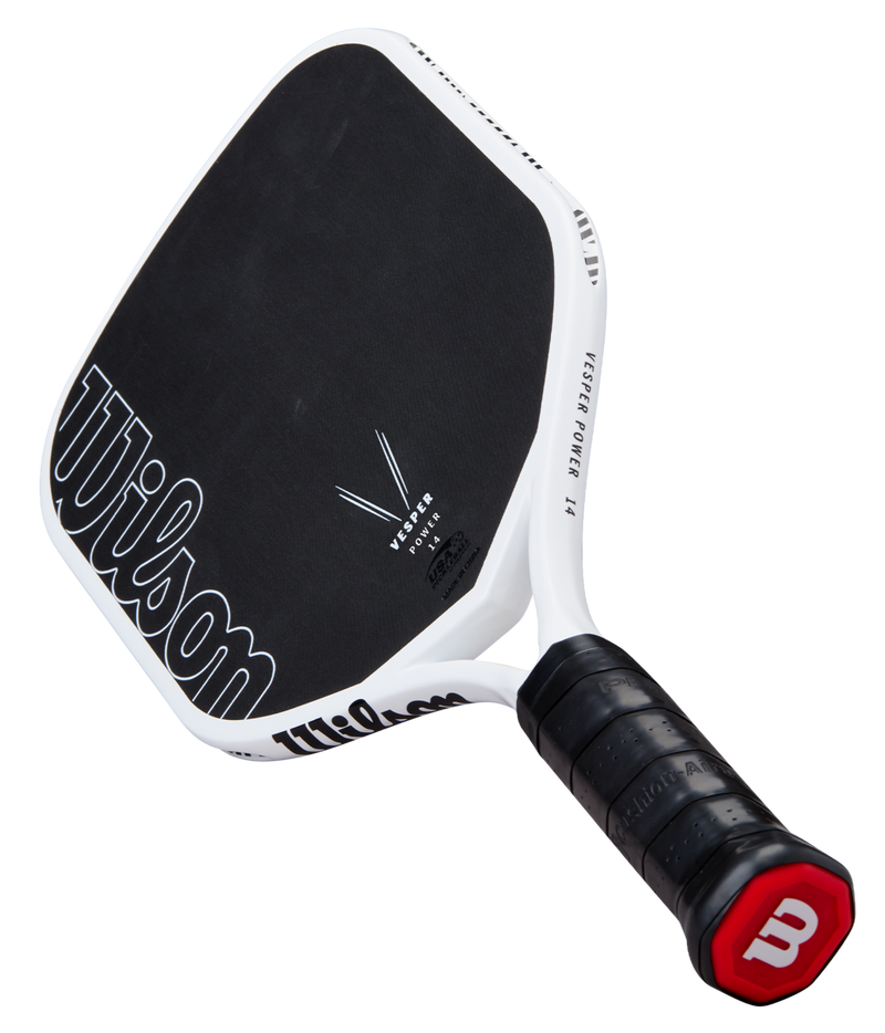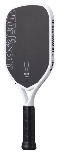 Leave everything on the court without leaving anything to chance with Vesper, a first-of-its-kind paddle designed to deliver the ultimate in feel and spin while allowing players to choose between more power or more control. CARBON OPTIMAX PADDLEFirst-of-its-kind bladder molded frame that optimizes compaction at impact without sacrificing strength and precision. Enhanced compaction provides maximum power legally allowed. RAW CARBON SURFACERaw carbon fiber hitting surface maximizes feel and spin. Vesper Power 14 features fiberglass base layer to maximize power. ISOCHAMBERHigh-density foam fully isolates polypropylene honevcomb core from bladder molded frame to maximize the sweetspot, and control as a result. FREEFLEX THROATMolded open throat design enhances speed and maneuverability, and also introduces bending as a new paddle performance characteristic. STABLEMAX HANDLEOne piece handle provides increased torsional stability and more consistent feel.