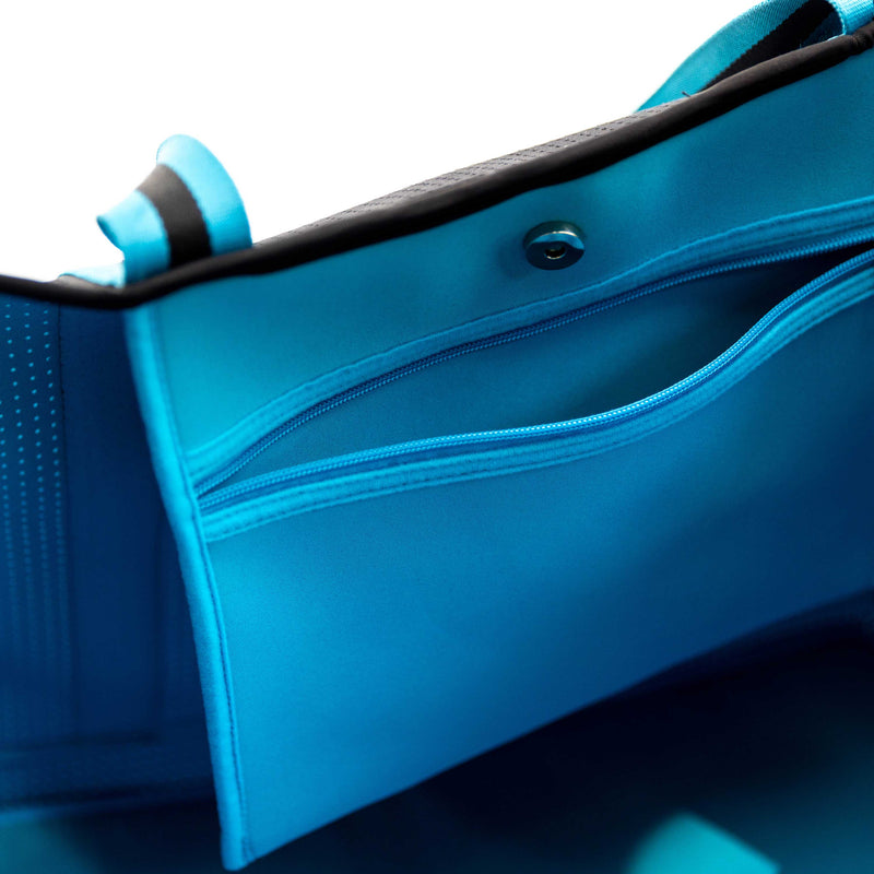 You asked and we delivered. This XL pickleball duffel bag is your new favorite carry all and sure to be the envy of the court. It holds ... well, everything. Two paddles zip into the front, it has an extra large reinforced interior pocket, small stash pockets on the inside, as well as side pockets that are great for shoes, water bottles, etc. It includes a longer optional strap. Made of neoprene, this bag is durable. Available in blue and black.